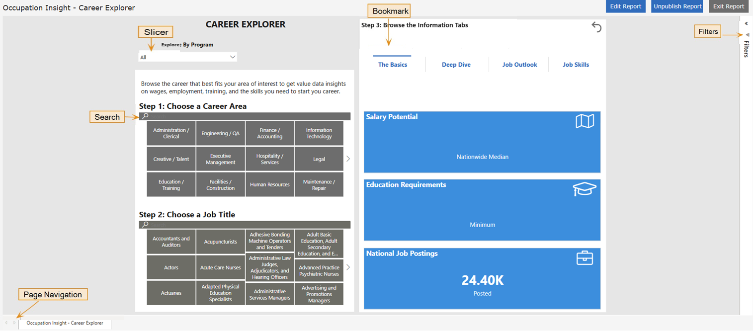 Occupation Insight - Program Explorer (In 2.1, shows the hierarchy by Program, Program Version, and Areas of Study.) |