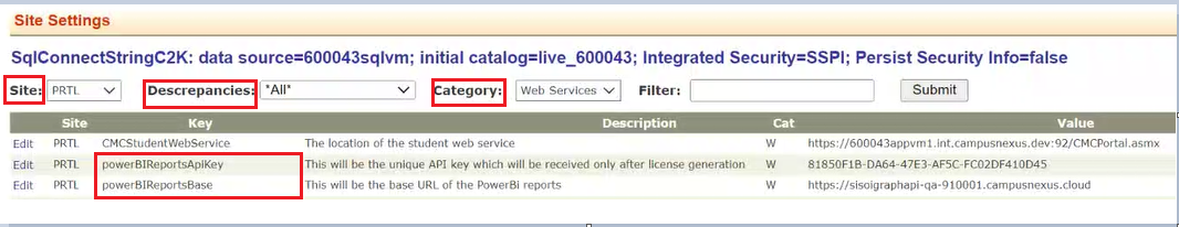 Note: The powerBIReportsBase and powerBIReportsApiKey values are populated only when customer has license for Occupation Insight, else the API key value remains blank.