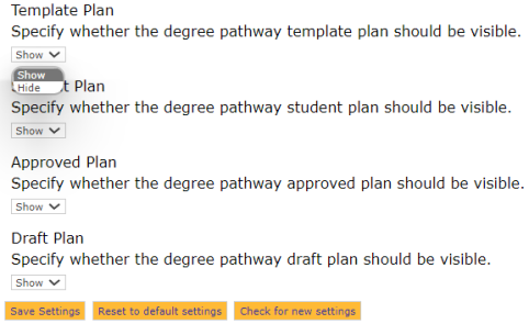 As a Portal administrator, you can also manage whether or not to display the below Degree Pathway plans for a student in the Student Portal.
