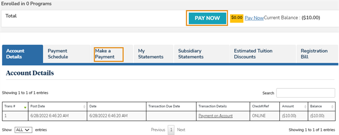 1. Choose one of the following paths to view the Make a Payment tab: