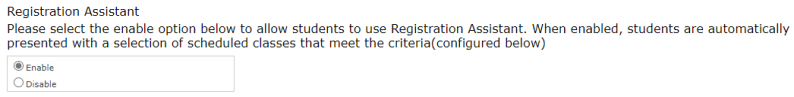 You can Enableor Disable the Registration Assistant option. If you want to display the Display Registration Assistance Link, you must have selected Enable for Registration Assistant.