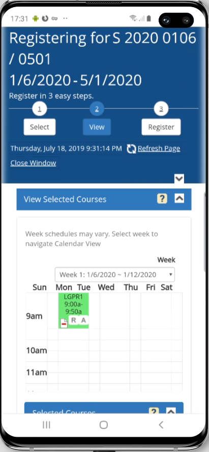 6. If the Registration Status for your courses is "Open", select Register to proceed to Step 1 - Select Courses.