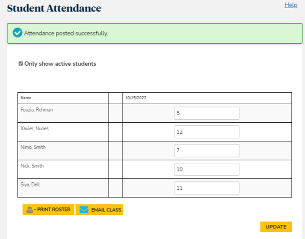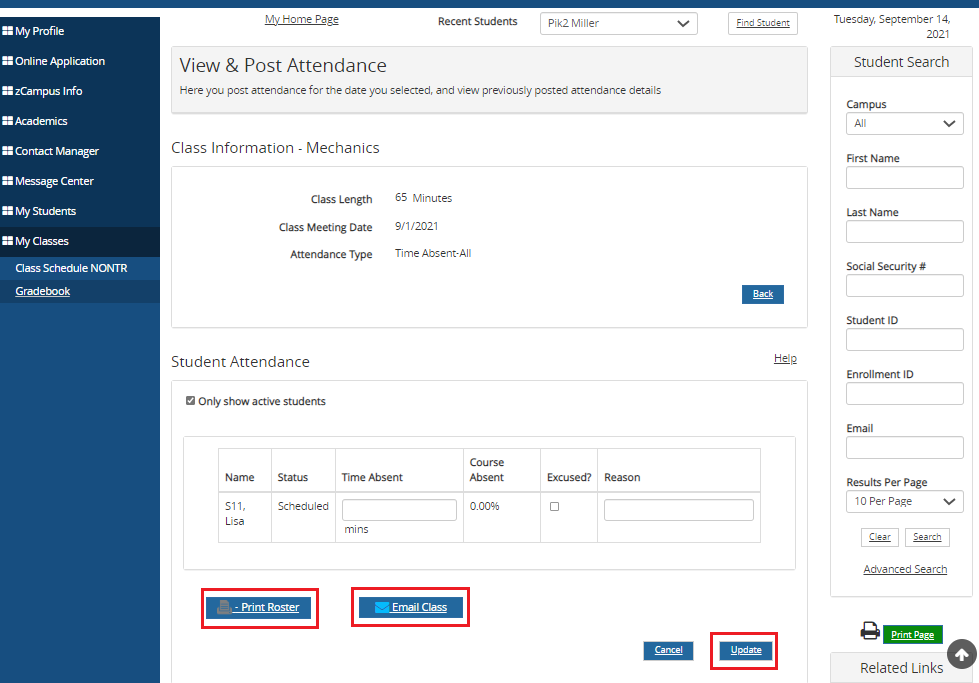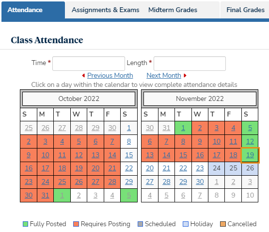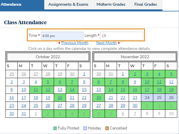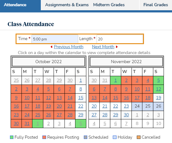 Note: By managing the settings in the Portal Configuration tool and if All Classes are selected, the primary instructor and all secondary instructors can post attendance in the class section.