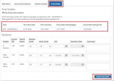 4. Select Save Final Grades. The changes made to the final grades are saved.