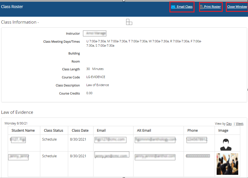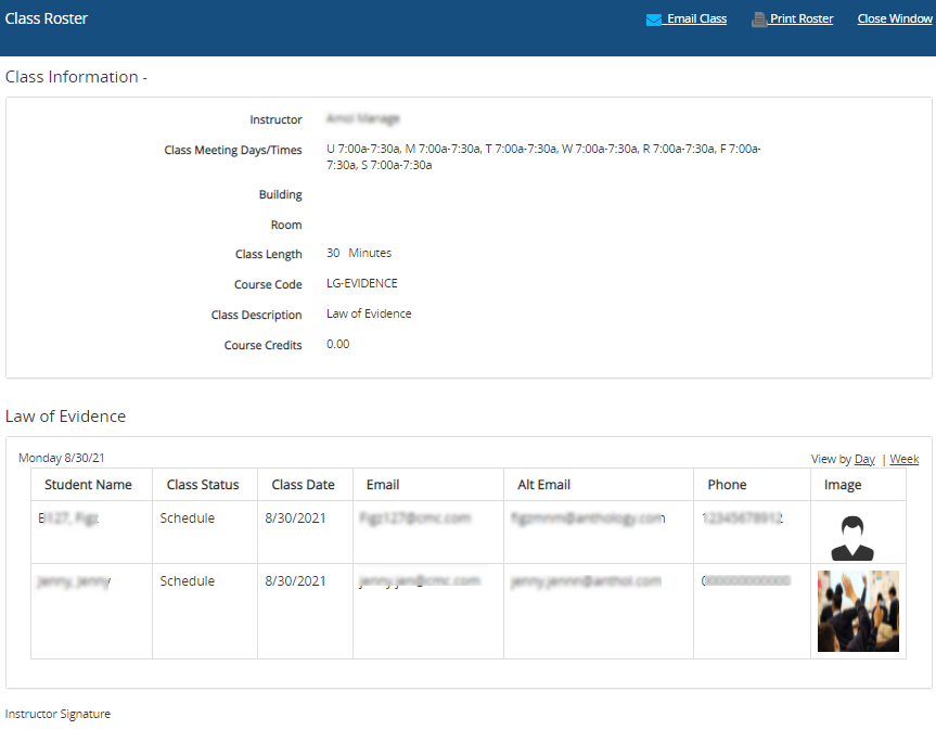 2. You can view the email, phone number and student’s image in the Class Roster’ report.