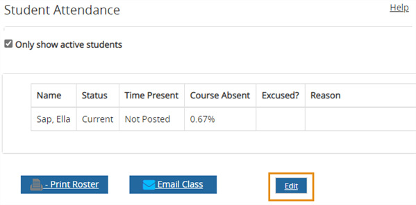 5. If you want to edit the attendance posted for the selected day and time, select the Edit button.