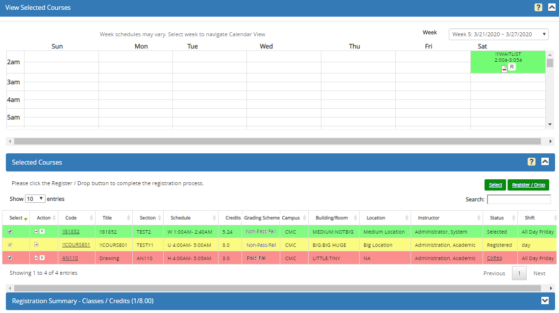 Once you have completed your selection review, select Register/Drop to proceed to Step 3 - Register.