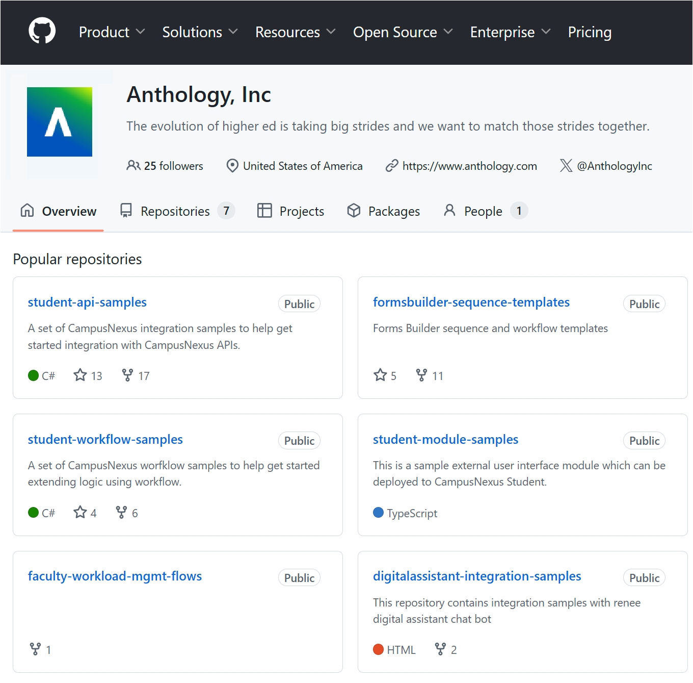 Anthology has created a set of community-driven GitHub repositories to help share ideas, solutions, and knowledge about Anthology products. We would love for you to contribute to this community as well, so please feel free to fork a project and commit your proposed changes. Submitting a change will write to a new branch so you can send a pull request to Anthology to incorporate changes back into the master branch.