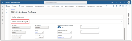 Click Human resources > Integration with external systems > Setup > Update data for federal work study payroll
