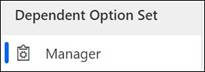 to add another layer of dependencies in which the user can select specific options based on the option selected in the configured child field. - For more information and contextual help about the Dependent Option Set Manager, click