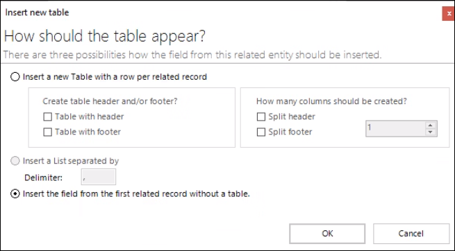 For additional details on inserting fields as document or as an image, see the MSCRM-Addons Blog.