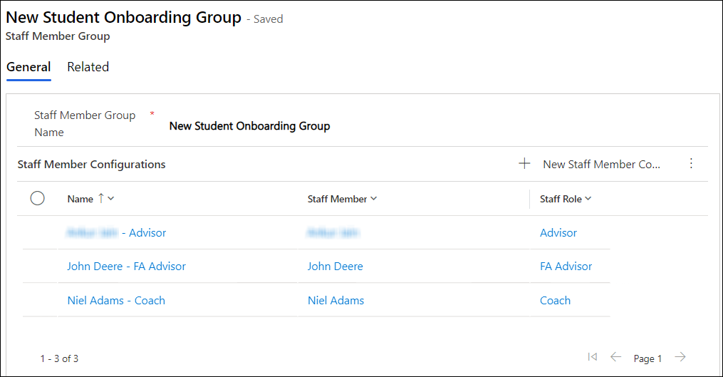 Note: A Staff Member Group consists of a combination of a Staff member and a Role, required for creating Success Network records. A Staff Member Group can include more than one Staff Member.