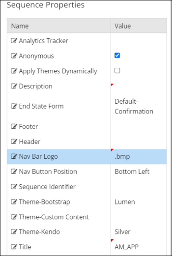 FormsBuilder.Sequencetable will show the name of the selected image in theNavBarLogocolumn. -