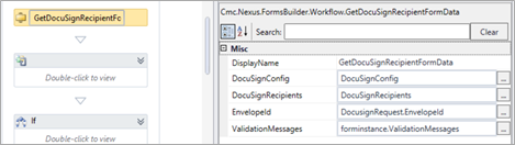 The DocuSign properties are configured in Forms Builder. Refer to DocuSign Settings.