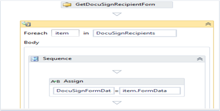 Drop a ForEach<> activity below the ForEach<> activity dropped below the GetDocuSignRecipientFormData activity.