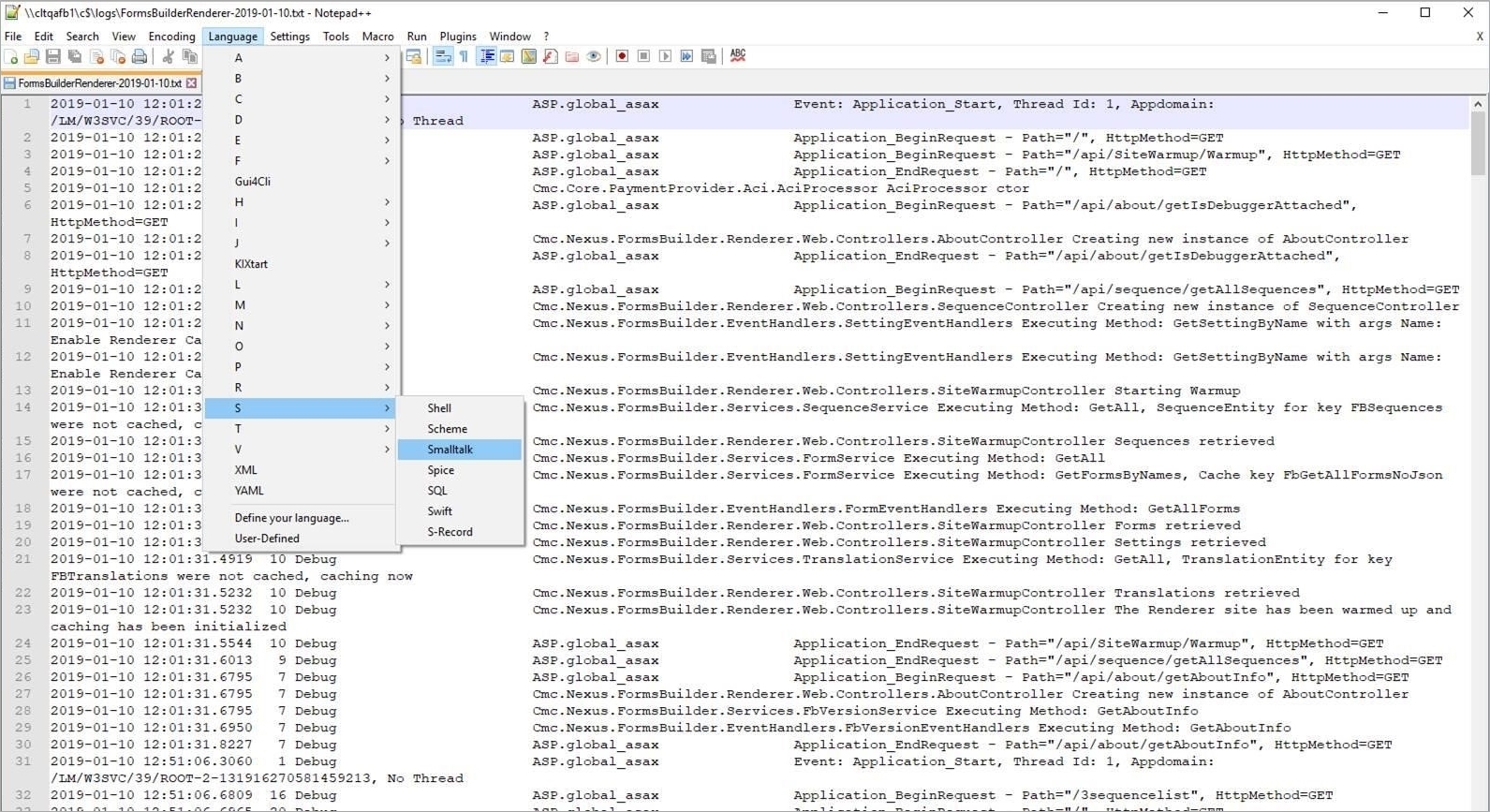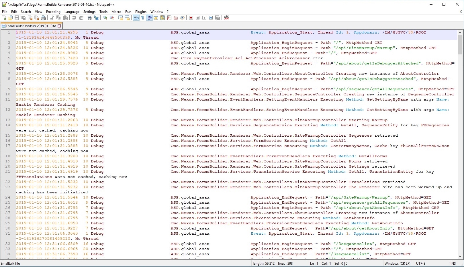 If viewing the log files in Notepad++, change the language to Smalltalk and it highlights and displays the information where it is easier to read.