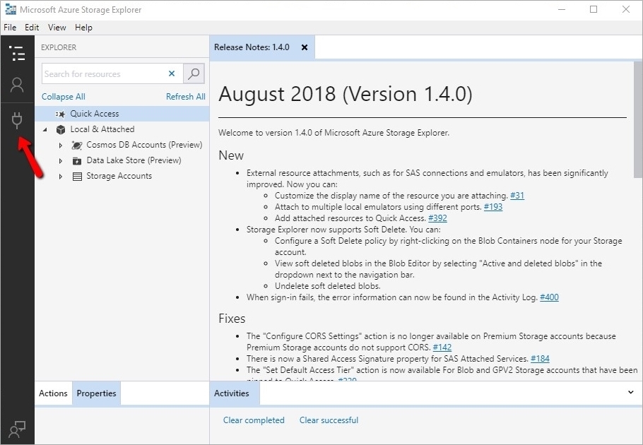 Open Microsoft Azure Storage Explorer and select the Plug icon.