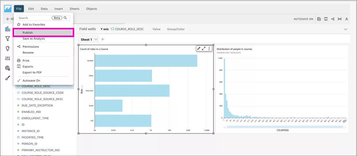 In this example, we chose the CDM_LMS.PERSON_COURSE table, which contains the mapping between people and courses, user enrollment information, and role assignment in courses.