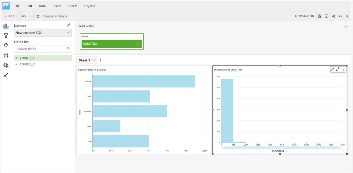 In this example, with COUNT(ID), the visual was changed to histogram, which is more suitable for such data.