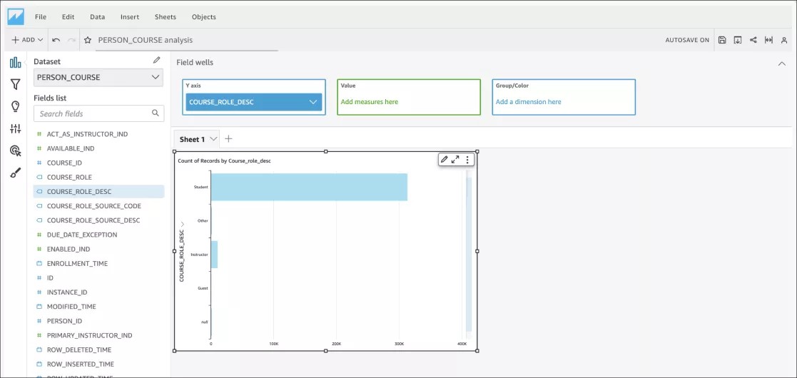 In this example, we chose the CDM_LMS.PERSON_COURSE table, which contains the mapping between people and courses, user enrollment information, and role assignment in courses.