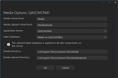 Media Directory Directory where the Media Components are stored (default: Program Files\Common Files\Media).