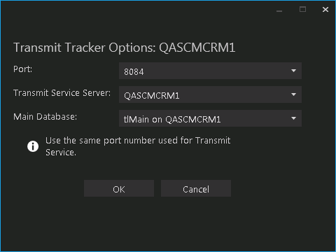 Transmit Service Server Select a Transmit Service Serve set up in the Services screen.