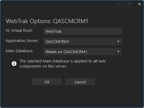 • WebTrak — Installs files required for the WebTrak feature and creates a virtual root for WebTrak on the selected server. It provides a Web page on the server that contains the WebTrak code snippet. It also tracks visitors to your corporate site and helps you start a chat session with visitors.