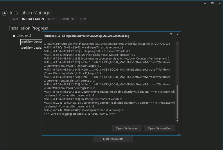 Click Start installation to proceed.