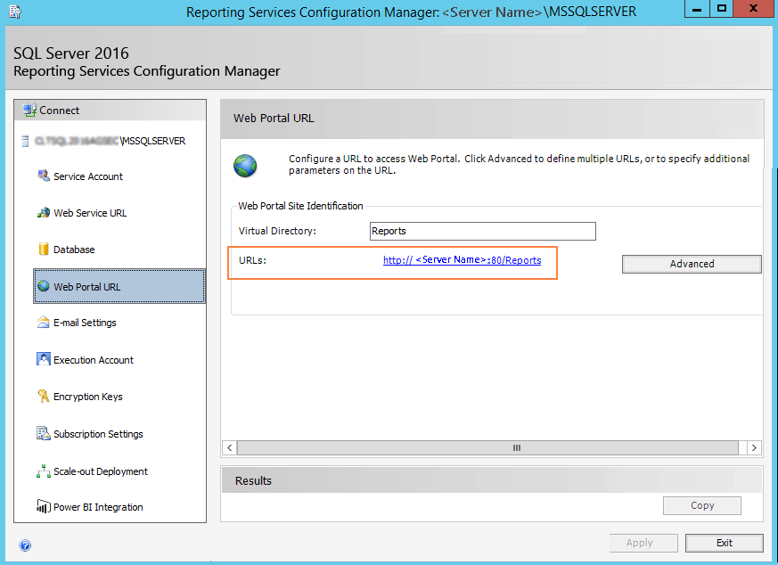 Specify the Web Portal URL configured to access the Web Portal. The specified URL will be stored in the web.config file. This URL is set while configuring the reporting service and can be found in Reporting Services Configuration Manager page.
