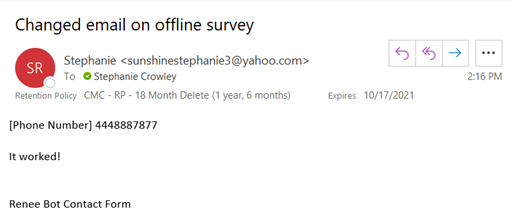 To test the configuration, submit an offline survey in Anthology Digital Assistant and check your inbox for the resulting email message. ![]()